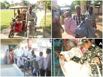 बता दें कि इस वीडियो के अलावा भी बहुत से ऐसे लोगों की तस्वीरें भी सामने आईं जिन्होंने चुनाव की अहमियत के बारे में सोचने पर एक बार फिर मजबूर किया। आंध्र प्रदेश के ईस्ट गोदावरी जिले में एक बुजुर्ग पिता अपने बेटे की गोद में वोट डालने पहुंचा। पश्चिम बंगाल के कूचबिहार में एक बुजुर्ग बैशाखी के सहारे मतदान केंद्र पहुंचा। उत्तर प्रदेश के बिजनौर में दूल्हा-दुल्हन भी मतदान करने पहुंचे।