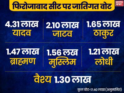 1992 में सपा का गठन हुआ था और यादव व मुस्लिम इसके वोट बैंक है। फिरोजबाद सीट पर करीब 1.56 लाख मुसलमान वोट हैं। मुसलमानों की ज्यादातर आबादी चूड़ियों के व्यवसाय से जुड़ी है। सदर बाजार के रहने वाले रेहान बताते हैं, इस बार मुस्लिम वोटों में बंटवारा होगा। ज्यादातर वोट इस बार भी सपा को जाएगा लेकिन एक हिस्सा शिवपाल के पक्ष में भी है। इसका कारण पूछने पर वो कहते हैं, फिरोजाबाद शहर के रहने वाले पूर्व सपा विधायक अजीम भाई शिवपाल का साथ दे रहे हैं। शहर के मुसलमानों में उनकी अच्छी पकड़ है।