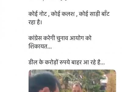 कांग्रेस ने भाजपा पर हमला करते हुए कहा कि कोई कलश, कोई साड़ी बांट रहा है. डील करोड़ों रुपए बाहर आ रहे हैं. प्रदेश कांग्रेस अध्यक्ष कलमनाथ के मीडिया समन्वयक नरेंद्र सलूजा ने बृजेन्द्र सिंह यादव के साड़ियां बांटते हुए इस वीडियो को ट्वीटर पर शेयर किया है.