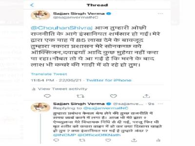 उन्होंने लिखा कि विधायक निधि से 85 लाख रुपये देने के बाद भी सरकार सोनकच्छ में मरीजो के लिए दवाई, ऑक्सीजन भी उपलब्ध नही करवा पाई और अब शव भी कचरा वाहन से ढोये जा रहे हैं।