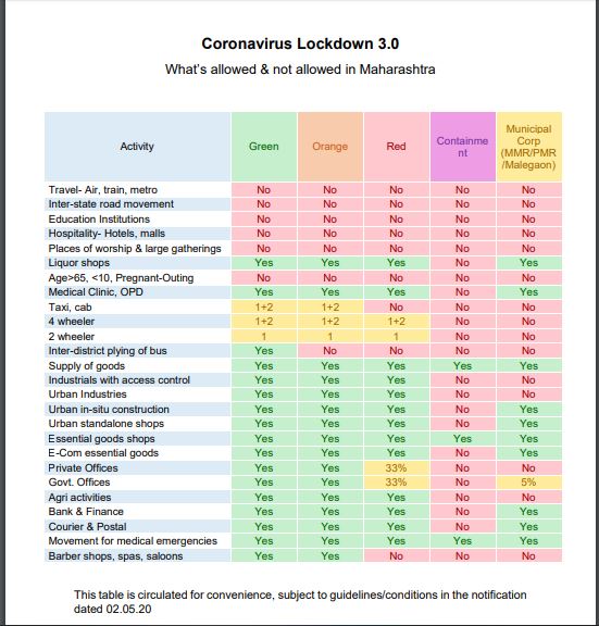 केंद्र सरकार के संशोधित दिशानिर्देशों के बाद महाराष्ट्र सरकार ने उन गतिविधियों की एक सूची जारी की है जिन्हें राज्य के विभिन्न क्षेत्रों में अनुमति नहीं दी जाएगी।