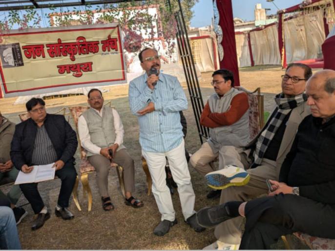 mathura: साहित्यिक , सांस्कृतिक एवं बुद्धिजीवियों की संस्था जन सांस्कृतिक मंच की आमसभा फ्लोरेंस गार्डन में डॉक्टर अशोक बंसल की अध्यक्षता एवं डॉक्टर धर्मराज के संचालन में संपन्न हुई। आमसभा में मंच की स्थापना के 4 जनवरी 2026 को 50 वर्ष पूरे होने पर स्वर्ण जयंती वर्ष के रूप में मनाते हुए वर्ष भर सामाजिक सांस्कृतिक एवं बौद्धिक तथा छात्र एवं नौजवानों से जुड़े प्रगतिशील एवं स्वस्थ मानवीय मूल्यों पर आधारित कार्यक्रम करने की विस्तार से रूपरेखा तैयार करते हुए निर्णय लिया गया कि मंच अपने विगत 50 वर्षों की शानदार सफल यात्रा को एक स्मारिका के रूप में प्रकाशित करेगा।