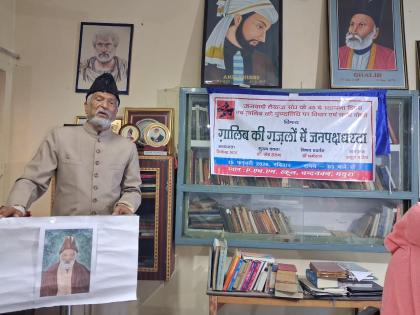 ग़ालिब की ग़ज़लों में दरअसल सामूहिक पीड़ा का स्वर है। उनकी शायरी चेतना की मुक्ति और मनुष्य की अस्मिता की रक्षा का साहित्यिक प्रयास है। संचालन करते हुए प्रसून पाण्डेय ने कहा कि जनवादी साहित्य केवल नारेबाज़ी नहीं, बल्कि संवेदना और विचार का संतुलित हस्तक्षेप है। ग़ालिब की रचनाएँ यह प्रमाणित करती हैं कि परंपरा के भीतर भी प्रतिरोध की सशक्त धारा मौजूद रहती है।