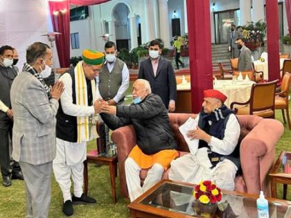 मोहन भागवत और मुलायम सिंह यादव की मुलाकात सोमवार को उपराष्ट्रपति वेंकैया नायडू की पोती की शादी के रिसेप्शन के कार्यक्रम में हुई। तस्वीर में मोहन भागवत से राजस्थान के बीकानेर से भाजपा सांसद अर्जुन राम मेघवाल हाथ मिलाते दिख रहे हैं। वहीं, पास में मुलायम सिंह यादव सपा की लाल टोपी पहने हुए बैठे दिख रहे हैं।