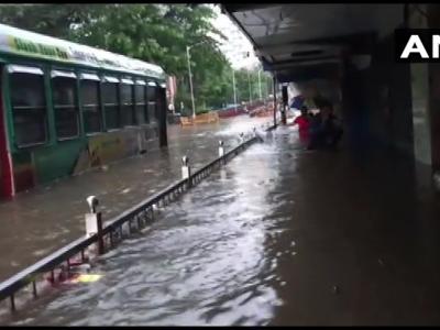 Maharashtra: Severe waterlogging in various parts of Mumbai following incessant rainfall in the city; visuals from Parel East.