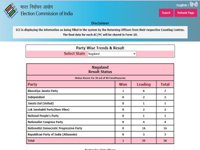 Nagaland Election Results 2023: रुझानों में एनडीपीपी-भाजपा गठबंधन 23 सीटों पर आगे, सत्ता वापसी के बने आसार, एनपीएफ 1 और कांग्रेस 4 पर आगे