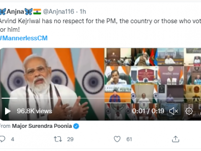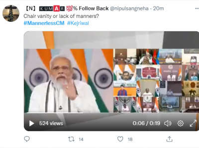 केजरीवाल को ऐसे देखकर अब यूजर्स सोशल मीडिया पर उन्हें #MannerlessCM बता रहे हैं। बता दें कि यह वीडियो सबसे पहले बीजेपी दिल्ली ने अपने ट्विटर अकाउंट पर साझा किया था। इसके साथ ही पार्टी ने कैप्शन में दिल्ली के मुख्यमंत्री अरविंद केजरीवाल को असभ्य बताया। वहीं, बैठक को संबोधित करते हुए पीएम मोदी ने कहा कि यह हर भारतीय के लिए गर्व की बात है कि 96 प्रतिशत व्यस्क आबादी को कोविड-19 रोधी टीकों की कम से कम एक खुराक दी चुकी है।