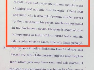निर्भया कांडः दोषी ने कहा-लोग प्रदूषित पानी और हवा से मर रहे हैं, फांसी की क्या जरूरत