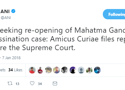 इस पीआईएल को एनजीओ 'अभिनव भारत' के पंकज फड़णीस ने सुप्रीम कोर्ट में डाला था। जिसमें पंकज का दावा था कि बापू की हत्या एक रहस्यमय शख्स ने की है।