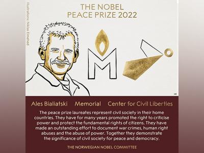 बेलारूस के मानवाधिकार अधिवक्ता एलेस बियालियात्स्की को नोबेल शांति पुरस्कार से सम्मानित किया गया है। उनके अलावा रूसी मानवाधिकार संगठन मेमोरियल और यूक्रेनी मानवाधिकार संगठन सेंटर फॉर सिविल लिबर्टीज को भी नोबेल शांति पुरस्कार दिया गया है।