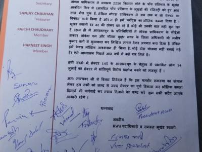 यह नॉएडा अथॉरिटी है या कोई भगोड़ा बिल्डर?" आरडब्ल्यूए ने नोएडा प्राधिकरण और जिला प्रशासन को अपनी मांगों और अपेक्षाओं का ज्ञापन पहले ही सौंप दिया है और प्राधिकरण से भौतिक कब्जे और सेक्टर के समग्र विकास के लिए समयसीमा साझा करने का अनुरोध किया।