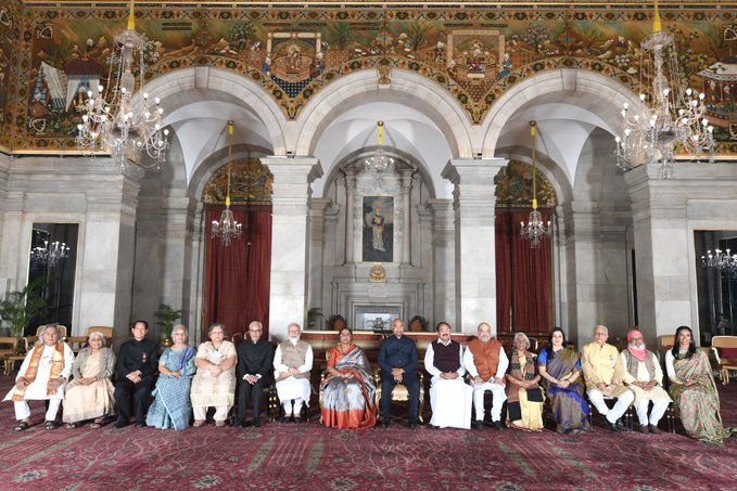 उन्होंने संथाली भाषा की प्रसिद्ध साहित्यकार दमयंती बेशरा, टेलीविजन और फिल्म अभिनेत्री सरिता जोशी, संगीतकार अदनान सामी खान और अभिनेत्री तथा फिल्म निर्माता कंगना रनौत को पद्म श्री पुरस्कार से सम्मानित किया।