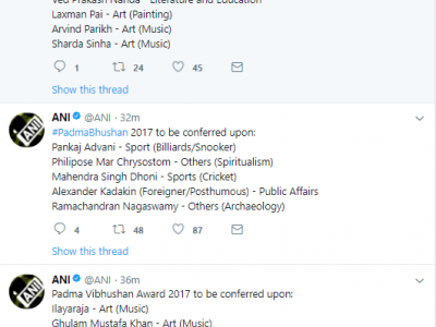 न्यूज एजेंसी एएनआई ने पद्म अवॉर्ड्स मिलने वाले सारे विजेताओं के नाम की लिस्ट निकाली है, जो इस प्रकार है-