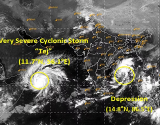 भारत : Cyclonic Storm Tej: चक्रवात 'तेज' भीषण तूफान में बदला, IMD ने अलर्ट जारी किया