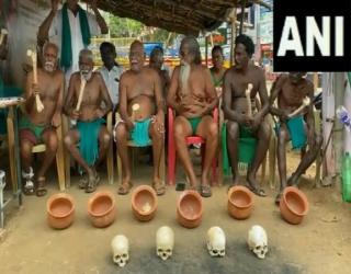 भारत : कावेरी जल विवाद:किसानों ने मानव कंकाल रखकर जताया विरोध, कर्नाटक सरकार से तमिलनाडु को पानी देने की मांग