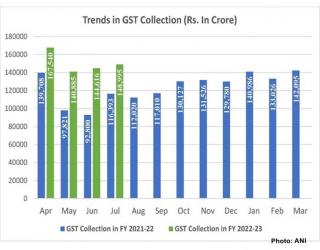 भारत : GST collections: जुलाई में जीएसटी संग्रह में 28 प्रतिशत का आया उछाल, 1.49 लाख करोड़ का हुआ कलेक्शन