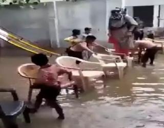भारत : मथुरा में टीचर ने पानी से भरे स्कूल से बाहर आने के लिए बनवाया कुर्सियों का पुल,वीडियो हुआ वायरल तो शिक्षिका पर हुआ एक्शन