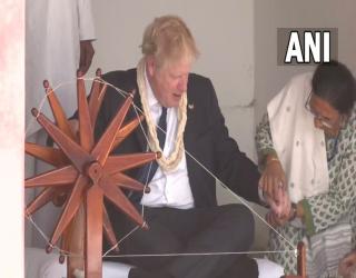 भारत : ब्रिटिश प्रधानमंत्री बोरिस जॉनसन ने साबरमती आश्रम में चलाया चरखा, महात्मा गांधी को लेकर लिखा नोट, देखिए