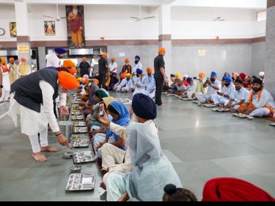 गुरुद्वारा में पीएम मोदी की सादगी को देख वहां मौजूद सभी लोग हैरान हो गए। पीएम खुद अपने हाथ में बाल्टी लेकर उस जगह से बाहर निकले और बाहर भोजन पर बैठे लोगों को अपने हाथ से खाना परोसा। इसके साथ ही खुद भी लंगर का स्वाद चखा। इस दौरान गुरुघर की मर्यादा के अनुकूल प्रधानमंत्री का स्वागत किया गया।