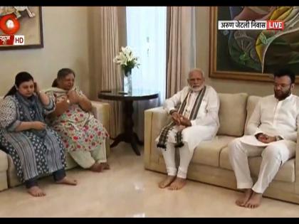 प्रधानमंत्री नरेंद्र मोदी और केंद्रीय गृह मंत्री अमित शाह मंगलवार को दिवंगत अरुण जेटली के आवास पर पहुंचे हैं और यहां उन्होंने जेटली को श्रद्धांजलि अर्पित की और शोक संतप्त परिवार के प्रति संवेदना व्यक्त किया। पीएम मोदी ने तीन दिवसीय के बाद अरुण जेटली के परिवार से मुलाकात की। वह उनके आवास स्थान कैलाश कालोनी पहुंचे।
