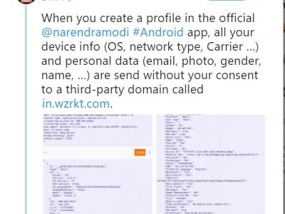 शनिवार (24 मार्च) को @fs0c131y ट्विटर हैंडल से एक यूज़र ने ट्वीट करके दावा किया कि भारतीय प्रधानमंत्री नरेंद्र मोदी को मोबाइल ऐप के माध्यम से जो जानकारियाँ इसे डाउनलोड करने वालों से ली जाती हैं वो एक अमेरिकी कंपनी को दिया जाता है। इस ट्वीट में दावा किया गया है नमो ऐप डाउनलोड करने वालों को किसी थर्ड पार्टी (किसी तीसरे पक्ष) को डाटा दिए जाने के बारे में नहीं बताया जाता है। इस व्यक्ति ने अपने ट्विटर बॉयो में खुद को "फ्रांसीसी सिक्योरिटी एक्सपर्ट" बताया है। इंडियन एक्सप्रेस ने दावा किया है कि वो इस ट्वीट करने वाले से संपर्क करने में सफल रहा है। ट्विट करने वाले ने इंडियन एक्सप्रेस को अपना परिचय रॉबर्ट बैपटिस्टे के रूप में दिया। उसने इंडियन एक्सप्रेस को बताया कि नमो ऐप का डाटा क्लेवर टैप नामक अमेरिकी कंपनी को दिया जाता है।