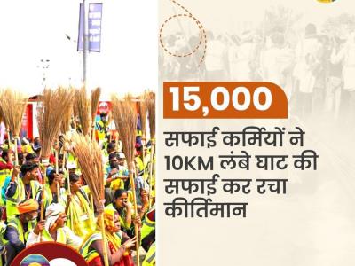 Prayagraj Mahakumbh 2025:15000 सफाईकर्मी ने 10000 किलोमीटर लंबे घाट की सफाई कर इतिहास रच दिया। परेड मैदान पर 1000 ई-रिक्शा संचालन कर विश्व रिकॉर्ड बनाया।