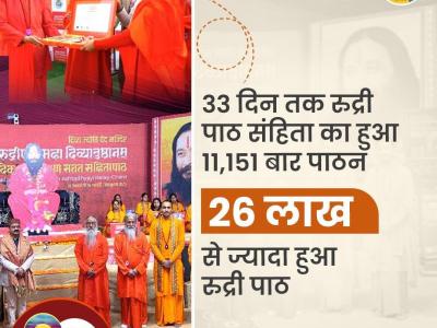 10000 से अधिक लोगों ने 8 घंटे में हैंड पेंटिंग बनाकर कीर्तिमान कर डाला। 33 दिन तक रुद्री पाठ संहिता का 11151 बार पाठ हुआ। 26 लाख से ज्यादा बार रुद्री पाठ हुआ। त्रिवेणी संगम के पावन तट पर श्रद्धा और भक्ति का महासंगम संपन्न हुआ, जहां हर मन शिवमय हो उठा और हर कण में गूंज रहा है, हर-हर महादेव!