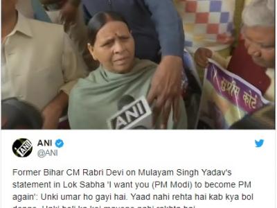 न्यूज एजेंसी एएनआई के मुताबिक राबड़ी देवी ने कहा, ''उनकी उम्र हो गई है, याद नहीं रहता है, कब क्या बोल देंगे... उनकी बोली के कोई मायने नहीं हैं..."