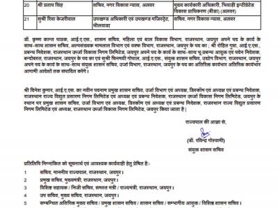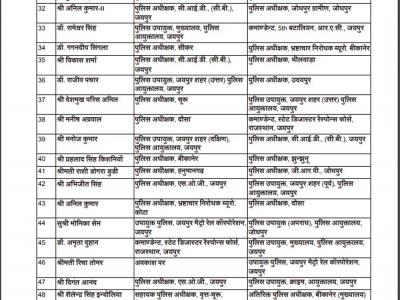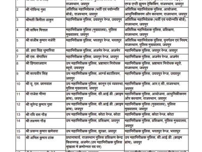 कार्मिक विभाग के अनुसार जयपुर के अतिरिक्त संभागीय आयुक्त नरेन्द्र शर्मा को राजस्थान राज्य खाद्य आपूर्ति निगम में महाप्रबंधक, राजस्थान राज्य पाठयपुस्तक मंडल के सचिव हरलीलाल अटल को लोक सेवा और लोक समस्या समाधान में संयुक्त सचिव के पद पर लगाया गया है। सूची के मुताबिक कई जिलों के अतिरिक्त कलेक्टर और उपखंड अधिकारियों का भी स्थानांतरण किया गया है।