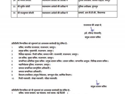 पीसी किशन को पंचायती राज के सचिव के रूप में नियुक्त किया गया है। चूरू, बारां और झालावाड़ के कलेक्टर भी बदल दिए गए। सांवरमल वर्मा को चूरू कलेक्टर बनाया गया, परियोजना निदेशक सह संयुक्त सचिव ईजीएस (रोजगार गारंटी योजना) राजेंद्र विजय को बारां में एक कलेक्टर के रूप में स्थानांतरित किया गया, जबकि खादी बोर्ड के सचिव हरिमोहन मीणा को झालावाड़ कलेक्टर नियुक्त किया गया।