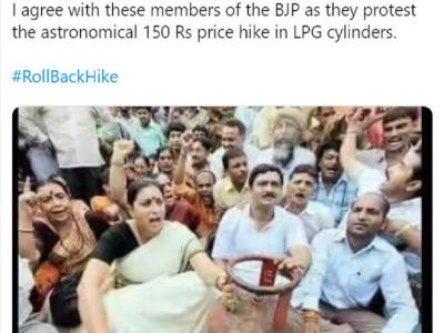 रसोई गैस सिलेंडर के दाम बढ़ने पर सीएम अशोक गहलोत ने कांग्रेस के पूर्व अध्यक्ष राहुल गांधी के उस ट्वीट को रीट्वीट भी किया, जिसमें राहुल गांधी ने किसी समय गैस सिलेंडर के दाम बढ़ने पर भाजपा नेताओं द्वारा विरोध प्रदर्शन किया गया था, उन्होंने व्यंग्यबाण चलाया- मैं भाजपा के इन सदस्यों से सहमत हूं, क्योंकि ये एलपीजी सिलेंडर में 150 रुपये की मूल्य वृद्धि का विरोध कर रहे हैं.