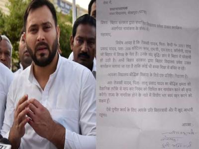 पत्र में कहा है कि विशेष आग्रह है कि तेजस्वी यादव पिता कैदी नं. 3351 लालू यादव, पता 208 कौटिल्य नगर एमपी, एमएलए कॉलोनी पटना बिहार विपक्ष के नेता हैं। उनकी मंद बुद्धि और ज्ञान से बिहार को परेशानी हो रही है। अभी बिहार सरकार द्वारा बिहार विद्यालय प्रवेश उत्सव कार्यक्रम चलाया जा रहा है।