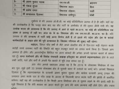 सांसद ने लिखा कि अगर पार्टी ने उन्हें टिकट नहीं दिया तो पार्टी पर ओबीसी की उपेक्षा का जो आरोप लगता है वह सही साबित होगा। उन्होंने लिखा कि उनके अलावा ओबीसी का कोई प्रतिनिधित्व जनपद में है ही नहीं। अगर पार्टी ने मुझे लोकसभा में यहां से टिकट नहीं दिया तो प्रदेश और देश के करोड़ों कार्यकर्ताओं के आहत होने की पूरी आशंका है, जिसका परिणाम सुखद नहीं होगा।