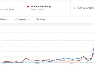 गूगल ट्रेंड्स के अनुसार 1 नवंबर से संजय राउत की सर्चिंग में काफी बढ़ोतरी हुई है। यह वह दौर था जब बीजेपी और शिवसेना के बीच रिश्ते बिगढ़ रहे थे। संजय राउत कमोबेश रोजाना बीजेपी पर हमला बोलते रहे। इस दौरान उनके ट्वीट भी काफी चर्चा में रहे। 11 नवंबर को संजय राउत का सर्च 100 प्वाइंट पर पहुंच गया था वहीं उद्धव ठाकरे 68 प्वाइंट पर थे। संजय राउत को सबसे ज्यादा गोवा, महाराष्ट्र, चंडीगढ़, झारखंड और छत्तीसगढ़ में सर्च किया गया।