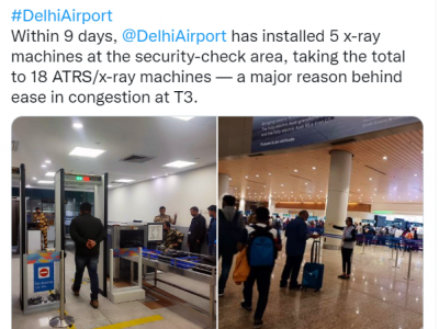 इंडिगो और एयर इंडिया ने इस सप्ताह की शुरुआत में यात्रियों को अपनी उड़ान के समय से 3 घंटे पहले आने के लिए कहा था। सिंधिया ने ट्वीट करते हुए लिखा, "9 दिनों के भीतर दिल्ली हवाईअड्डे सुरक्षा-जांच क्षेत्र में 5 एक्स-रे मशीनें स्थापित की हैं, कुल मिलाकर 18 एटीआरएस/एक्स-रे मशीनें टी3 पर भीड़भाड़ में आसानी के पीछे एक प्रमुख कारण हैं।"