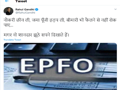 नई दिल्ली:कांग्रेस के पूर्व अध्यक्ष और सांसद राहुल गांधी लगातार मोदी सरकार पर लगातार हमला कर रहे हैं। मंगलवार को उन्होंने अपने आधिकारिक ट्विटर हैंडल से एक बार फिर मोदी सरकार पर निशाना साधा। उन्होंने लिखा कि नौकरी छीन ली और बीमारी रोक नहीं पाए मगर वो शानदार सपने दिखाते हैं। राहुल गांधी ने कहा कि नौकरी छीन ली, जमा पूंजी हड़प ली, बीमारी भी फैलने से नहीं रोक पाए। मगर वो शानदार झूठे सपने दिखाते हैं।