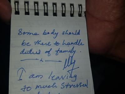 इसी बीच एक तस्वीर सामने आई है, जिसे गुरु भय्यू महाराज का सुसाइड नोट बताया जा रहा है। ये सुसाइड नोट एक नोट पैड पर लिखा हुआ- जिसमें उन्होंने लिखा है, मैं अपनी जिंदगी से तंग आ चुका हूं। मैं बहुत स्ट्रेस में हू। इसलिए मैं ये सबकुछ छोड़ रहा हूं। इस नोट के पहले लाइन में उन्होंने कुछ परिवार की परिस्थितियों के बारे में भी जिक्र किया है।