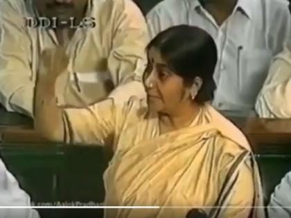 सुषमा स्वराज एक प्रखर वक्ता और कुशल राजनेता के रूप में जानी जाती हैं। धारा 370 पर भी संसद में कई बार उनकी गर्जना सुनी गई है। सुषमा स्वराज के निधन के बाद सोशल मीडिया पर उनके भाषण के कुछ अंश शेयर किए जा रहे हैं जो उन्होंने आर्टिकल 370 के संबंध में दिए थे। वो कहती दिख रही हैं कि हम आर्टिकल 370 हटाने की मांग करते हैं।