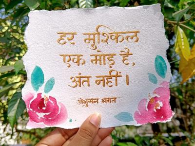 लेखक का संदेश स्पष्ट है जीवन में आने वाली कठिनाइयाँ अंत का संकेत नहीं, बल्कि आगे बढ़ने का अवसर होती हैं। यह विचार किसी भी संघर्ष से गुजर रहे व्यक्ति को संबल देता है और यह एहसास कराता है कि हर चुनौती एक मोड़ है जिसे पार करना ही जीवन का सच्चा मंत्र है। इस प्रेरणादायी विचार को और भी आकर्षक रूप दिया है शहर की प्रतिभाशाली कैलीग्राफी कलाकार शिवांगी पांडे ने।