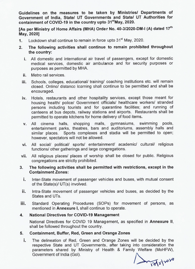 Lockdown 4: देशभर में 31 मई तक बढ़ा लॉकडाउन, गृह मंत्रालय ने जारी की गाइडलाइन