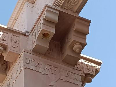 पत्रकार ने एक कदम आगे ही बढ़ाया था कि तभी करीब 30 फीट ऊंचे पिलर से नक्काशी किया हुआ लट्टू नुमा पत्थर नीचे आ गिरा। कुशवाह इसमें बाल-बाल बच गए। नीचे जिस जगह पर पत्थर गिरा वहां की टाइल्स पूरी तरह से फूट गई और उसमें बड़ा सा गड्ढा हो गया। त्रिवेणी मंडपम में पिलरों पर इस प्रकार के कई लट्टू नुमा नक्काशी के पत्थर लगे हुए हैं। जो कि पिलर से चिपके हुए हैं।