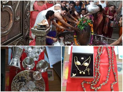मध्य प्रदेश के उज्जैन स्थित श्री महाकाल मंदिर में बीते दो महीनों में श्रद्धालुओं ने लाखों रुपये कीमत की चीजें दान कीं। पूणे निवासी प्रसाद भिमाले और डॉ. सागर कोलते ने श्री महाकालेश्वर मंदिर में अपने गुरू की प्रेरणा से भगवान को स्वर्ण मंडित रुद्राक्ष की माला, पार्वती माता हेतु सोने का मंगलसूत्र जिसकी दोनों कटोरी में 0.35 कैरेट के दो हीरे लगे है, नंदी जी के लिए सोने के दो नेत्र जिसमें 0.25 कैरेट के दो हीरे लगे है, सोने का बिल्वपत्र, सोने की गौमाता ठप्पा, गणपति हेतु सोने की दुर्वा अर्पित की।