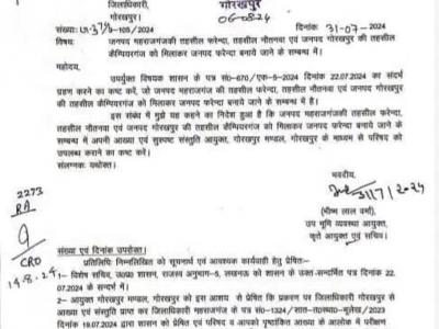 UP News: महाराजगंज की तहसील फरेंदा एवं नौतनवा और गोरखपुर की तहसील कैम्पियरगंज को मिलाकर फरेंदा बनाए जाने के संबंध में अपनी रिपोर्ट स्पष्ट संस्तुति के साथ दें.