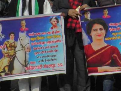 यूपी: 'झांसी की रानी' के रूप में दिखीं प्रियंका गांधी, कांग्रेस कार्यकर्ताओं ने की गोरखपुर से उम्मीदवार बनाने की मांग