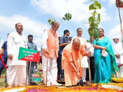 लखनऊः उत्तर प्रदेश में शनिवार को उत्तर प्रदेश में एक दिन (20 जुलाई) में 36.50 करोड़ पौधरोपण महाअभियान का शुभारंभ हुआ. इस महाअभियान के तहत सीएम योगी ने लखनऊ में कुकरैल नदी के किनारे 'एक पेड़ मां के नाम' को समर्पित 'पेड़ लगाओ, पेड़ बचाओ जन अभियान-2024 के तहत हरिशंकरी का एक पौधा लगाया और पौधे को रक्षा सूत्र भी बांधा. वही राज्यपाल आनंदी बेन पटेल ने सीतापुर में चंदन का पौधा लगाने के बाद सूबे में चलाए जा रहे पौधरोपण कार्यक्रम को लेकर सवाल खड़ा कर दिए.