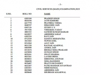 सिविल सेवा के टॉप 25 उम्मीदवारों की लिस्ट-