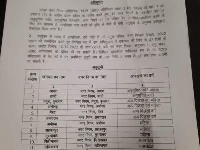 यूपी के 17 नगर निगम में आठ सामान्य वर्ग के लिए, दो पिछड़ा वर्ग के लिए, अनुसूचित जाति के लिए दो व अनुसूचित जाति की महिला के लिए एक सीट आरक्षित की गई है.
