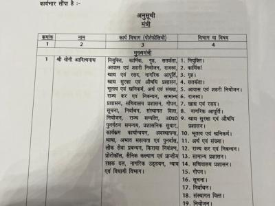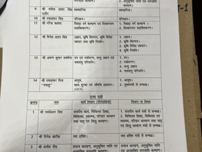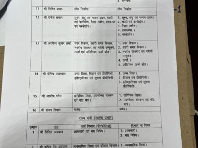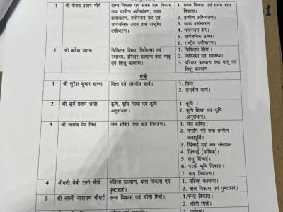 इसमें बताया गया है कि सूर्य प्रताप शाही को कृषि, कृषि शिक्षा एवं कृषि अनुसंधान विभाग दिया गया है, जबकि भाजपा के प्रदेश अध्यक्ष स्वतंत्र देव सिंह को जल शक्ति तथा बाढ़ नियंत्रण विभाग की कमान सौंपी गई है। प्रवक्ता के मुताबिक, बेबी रानी मौर्य को महिला कल्याण, बाल विकास एवं पुष्टाहार विभाग तो नंद गोपाल नंदी को औद्योगिक विकास, निर्यात प्रोत्साहन, एनआरआई तथा निवेश प्रोत्साहन विभाग मिला है।