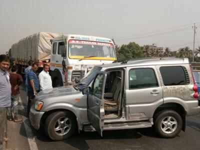 VHP leader Pravin Togadia's car hit by a truck near Surat, escapes unhurt. pic.twitter.com/7gpfWBCLoI