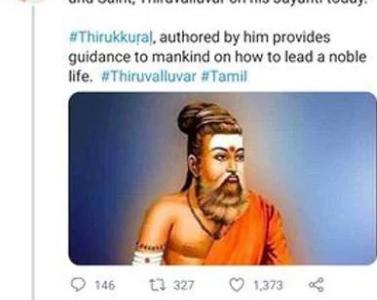 उपराष्ट्रपति वेंकैया नायडू ने गुरुवार को तमिल संत एवं कवि तिरुवल्लुवर की तस्वीर ट्वीट की जिसमें उन्हें भगवा कपड़ों में दिखाया गया था। हालांकि, ट्विटर पर आलोचना होने के बाद तस्वीर हटा ली गई। उपराष्ट्रपति के ट्विटर हैंडल से हिंदू धार्मिक प्रतीकों जैसे पवित्र भभूत के साथ कवि की तस्वीर जारी की गई जिसका सोशल नेटवर्किंग साइट के एक वर्ग ने विरोध किया।